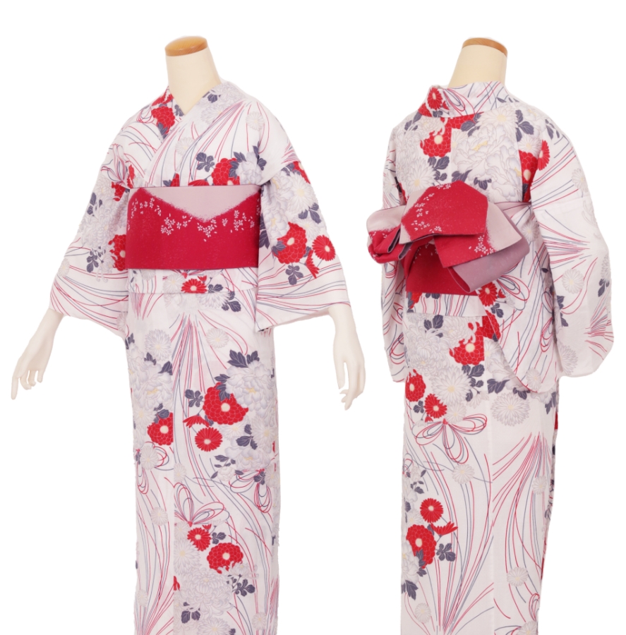 Purchase a set of five items including the yukata, obi belt, bag, sandals, and waist band. (Price differs depending on the yukata)