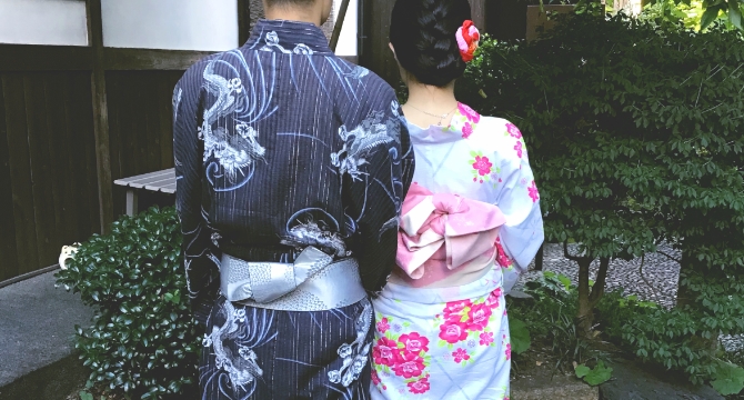 The price displayed is for the full Yukata rental set for two people (one man and one woman).