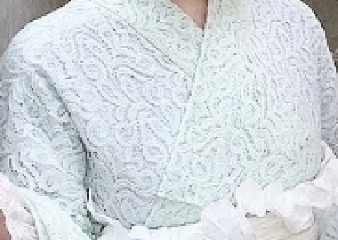 Lace peeking from the cuffs and collar adds an elegant touch.