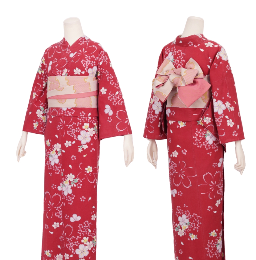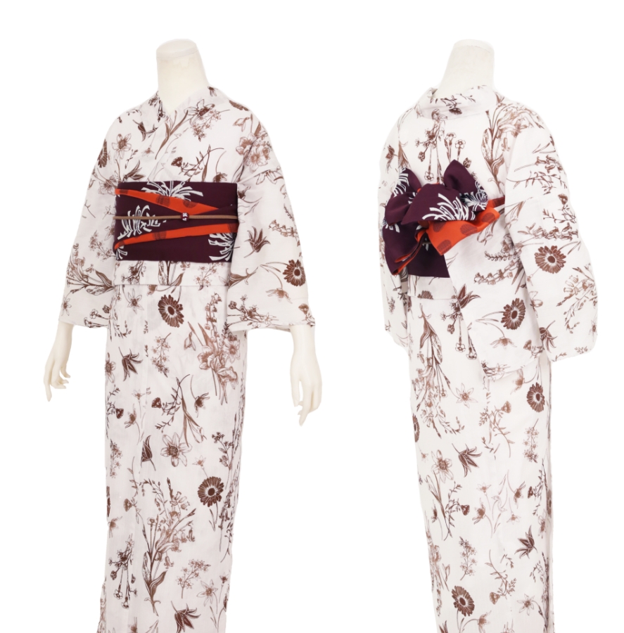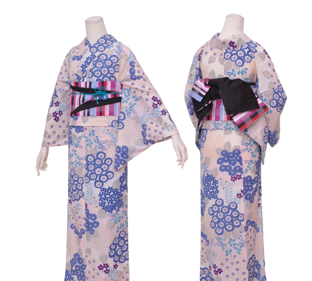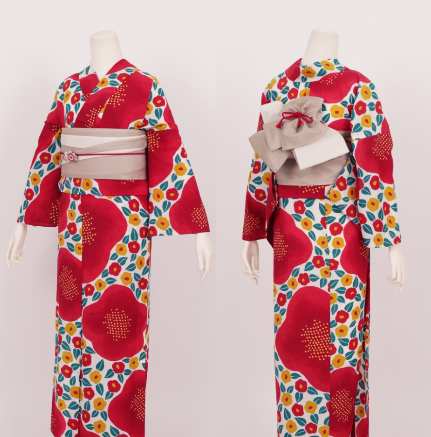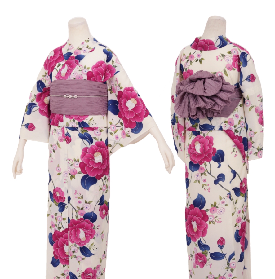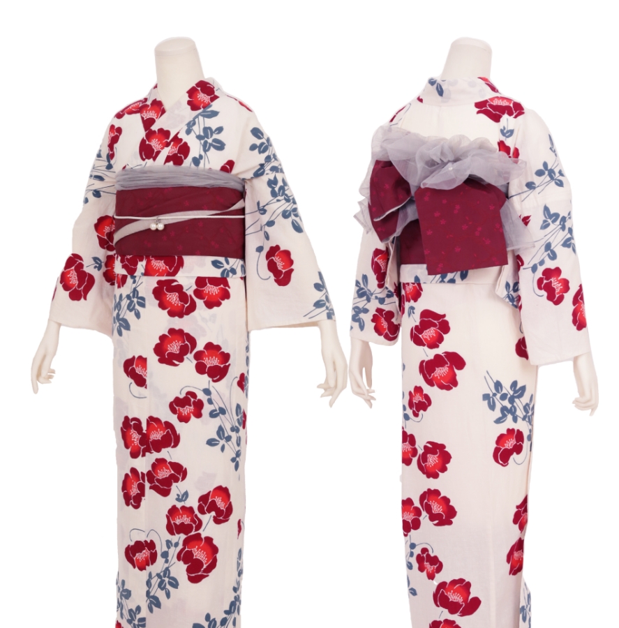 Purchase a set of five items including the yukata, obi belt, bag, sandals, and waist band. (Price differs depending on the yukata)
