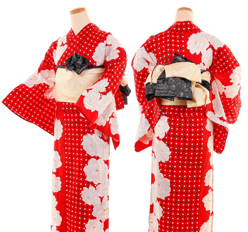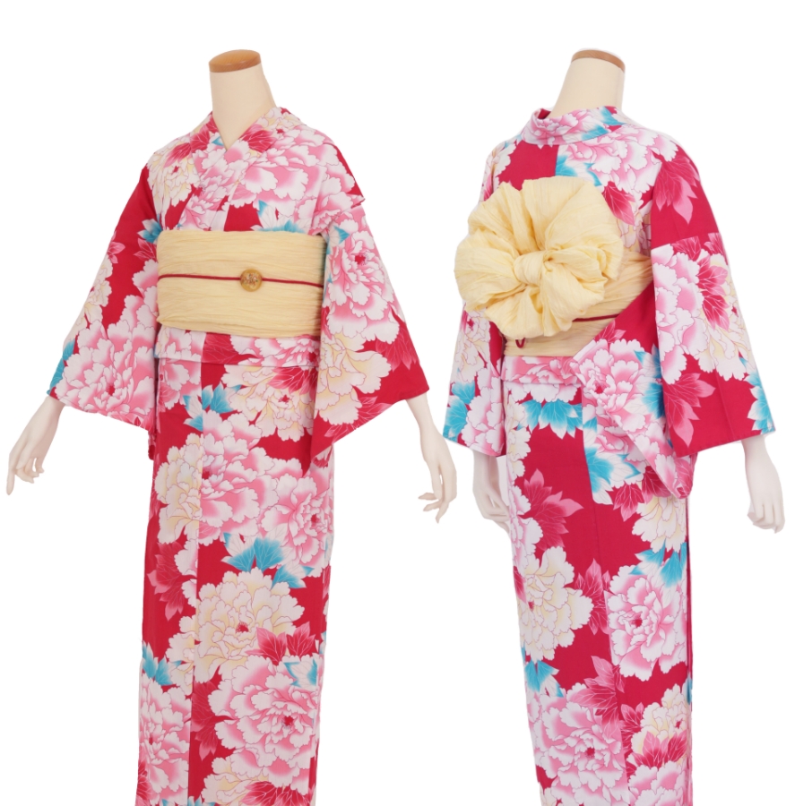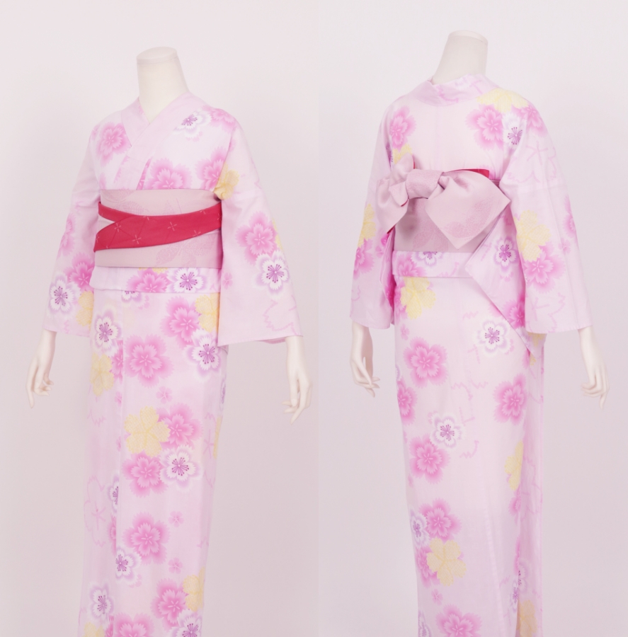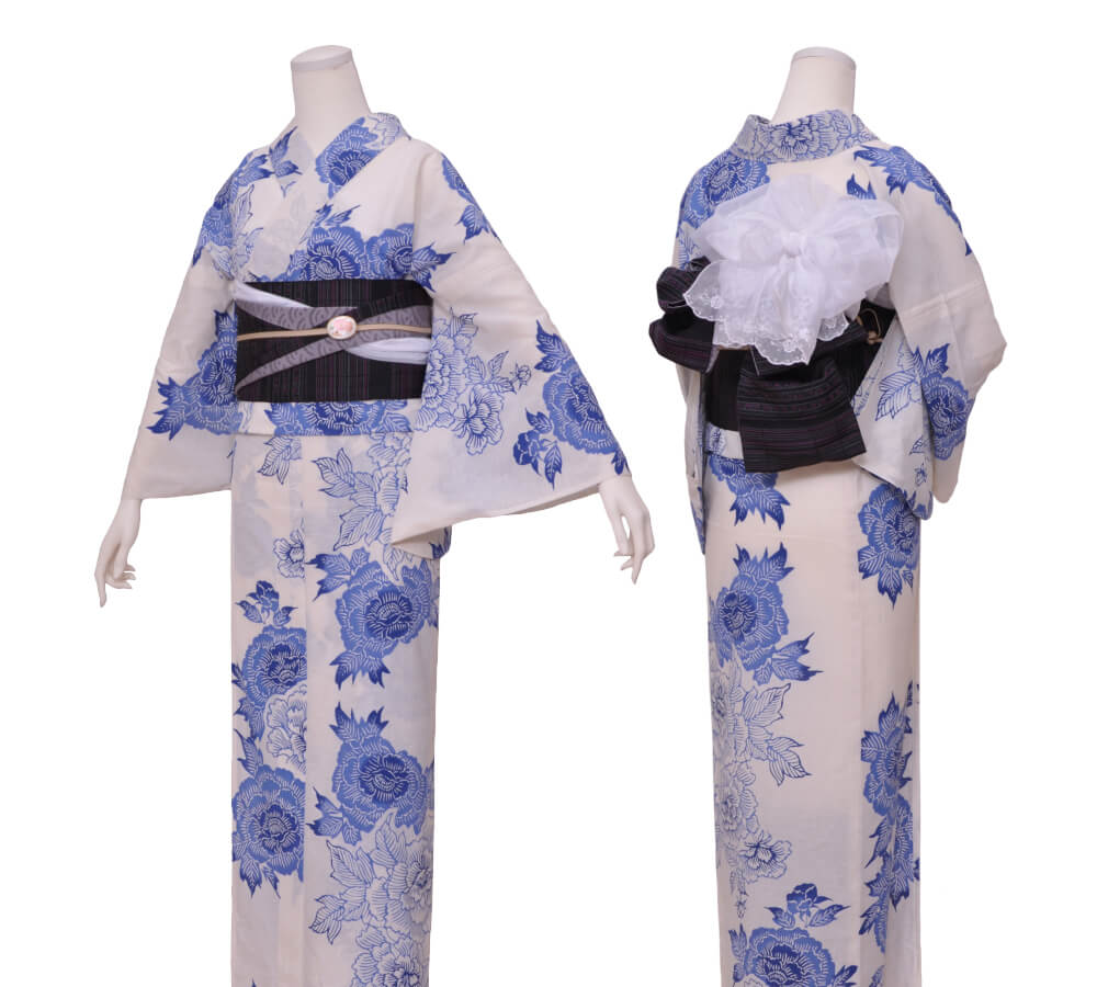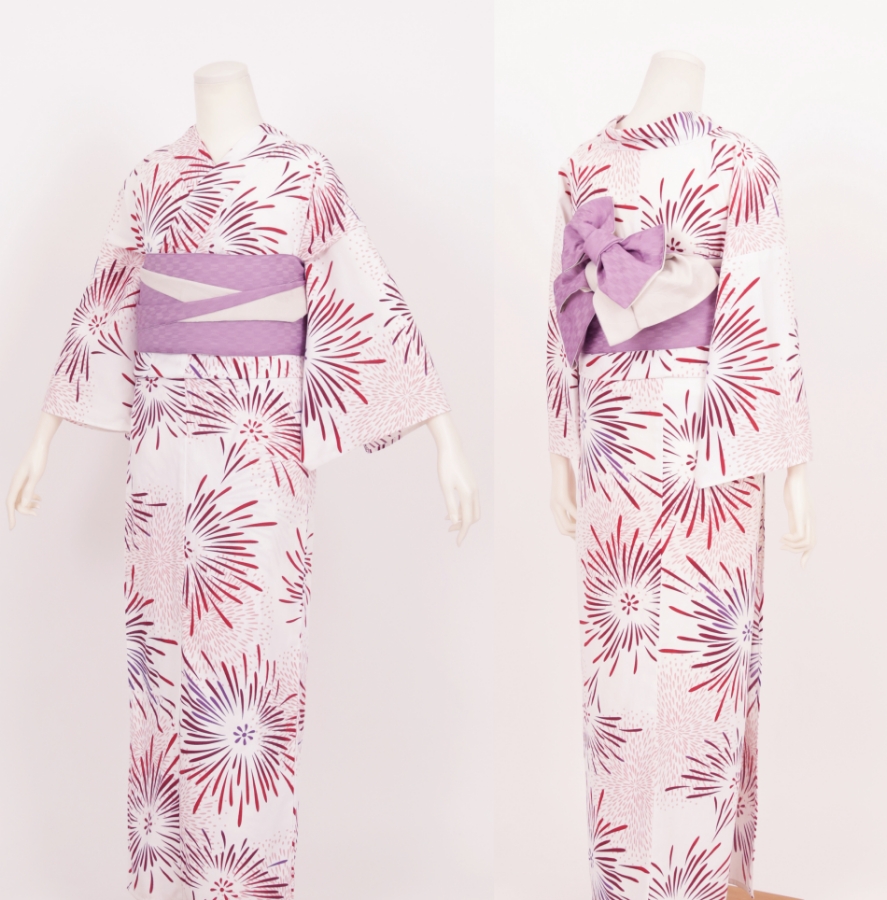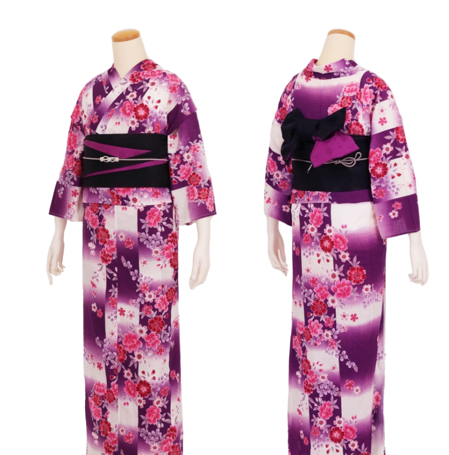Purchase a set of five items including the yukata, obi belt, bag, sandals, and waist band. (Price differs depending on the yukata)