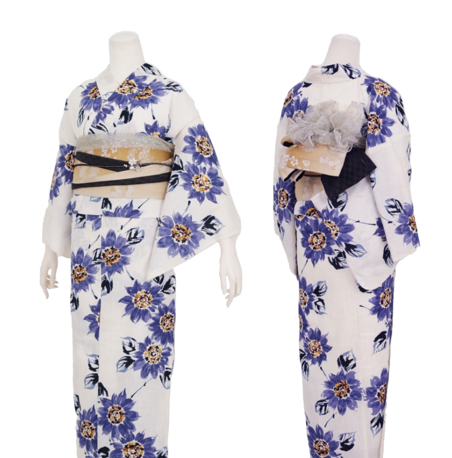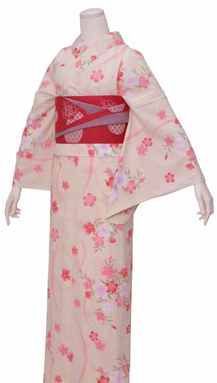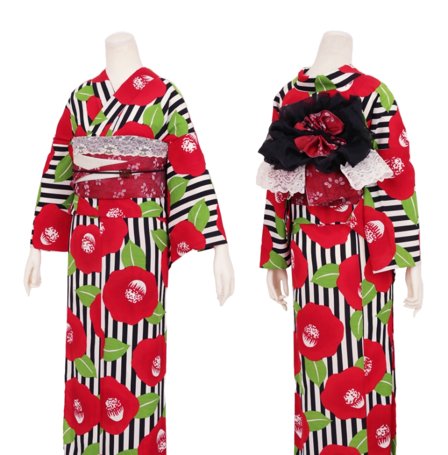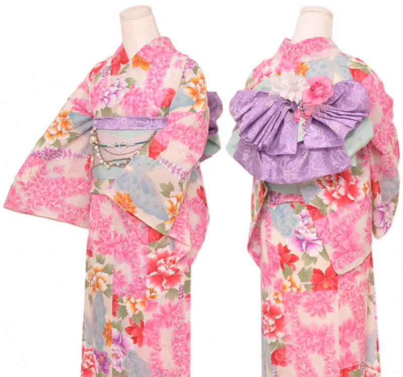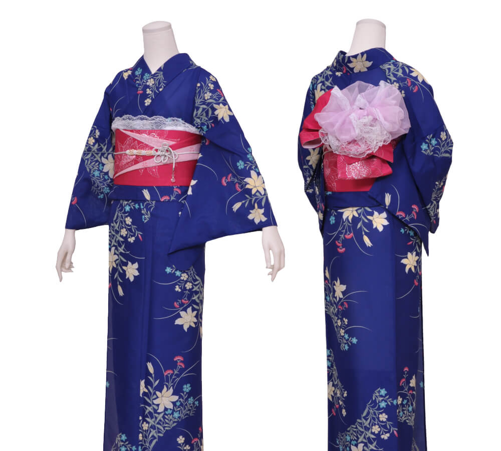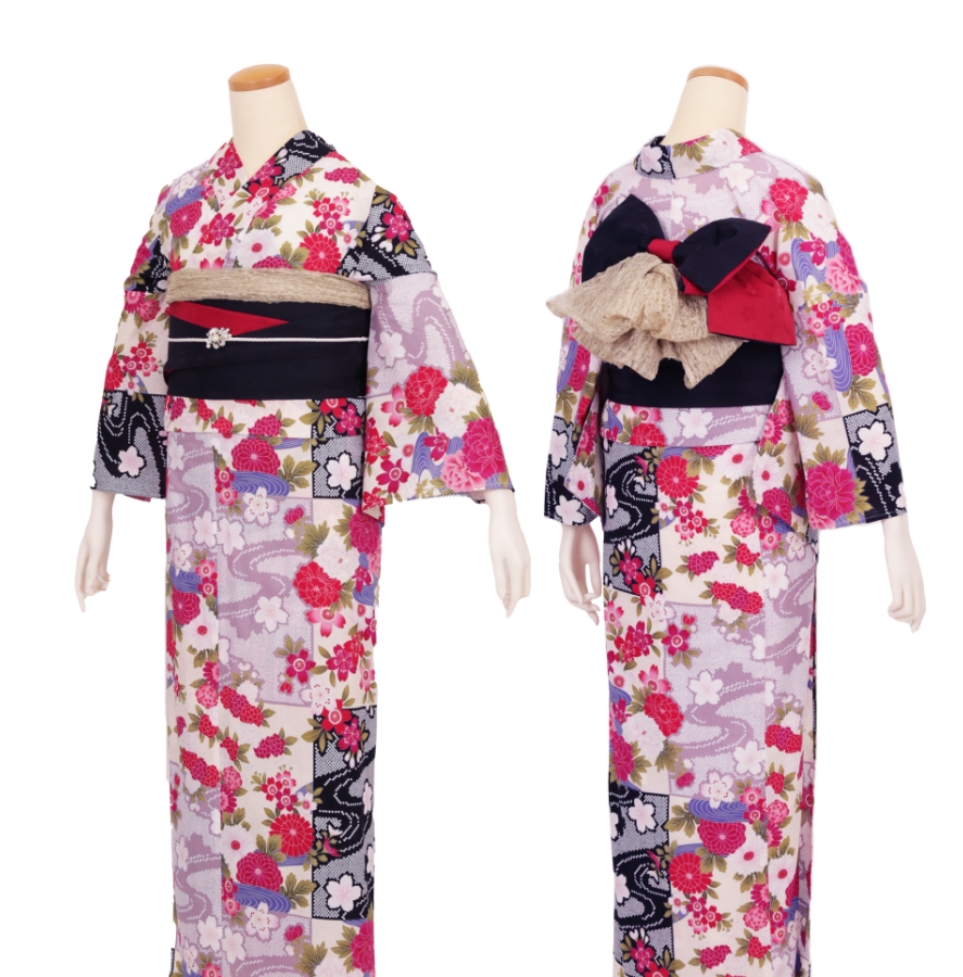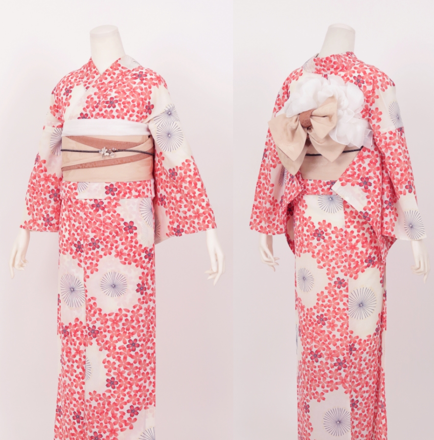 Purchase a set of five items including the yukata, obi belt, bag, sandals, and waist band. (Price differs depending on the yukata)