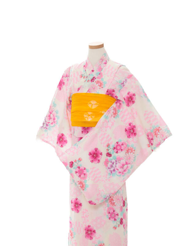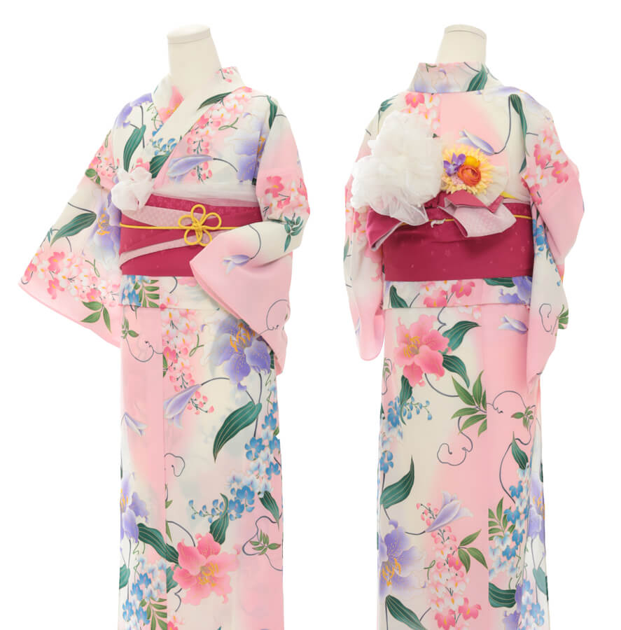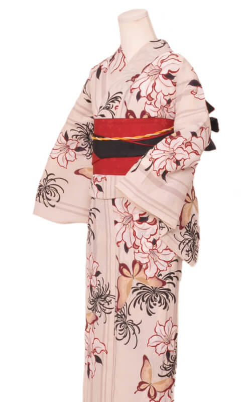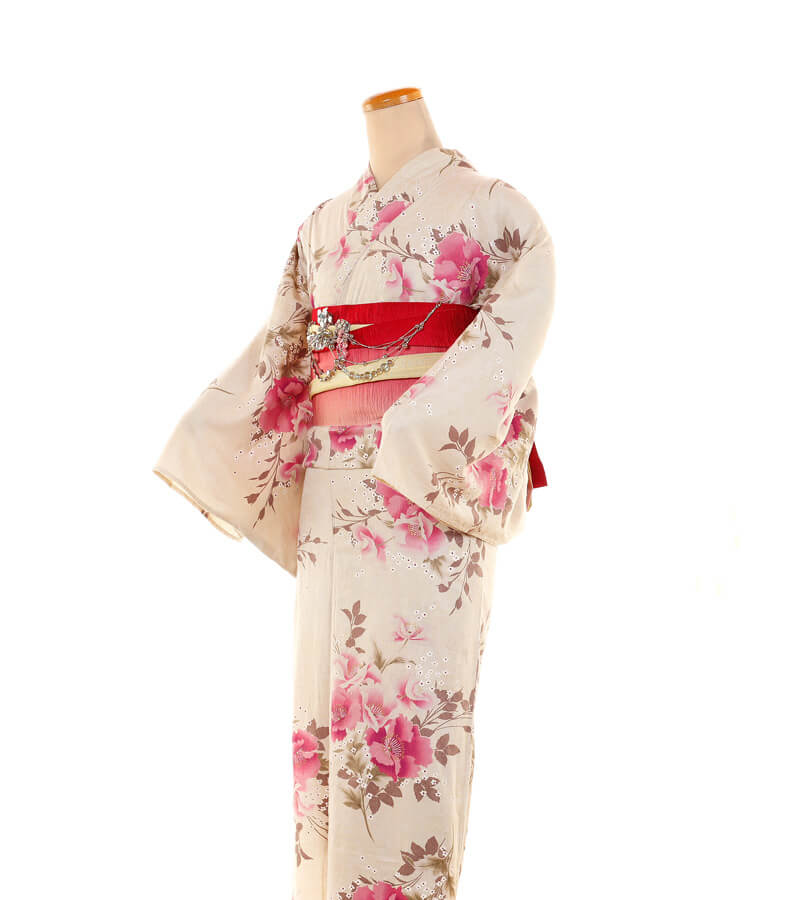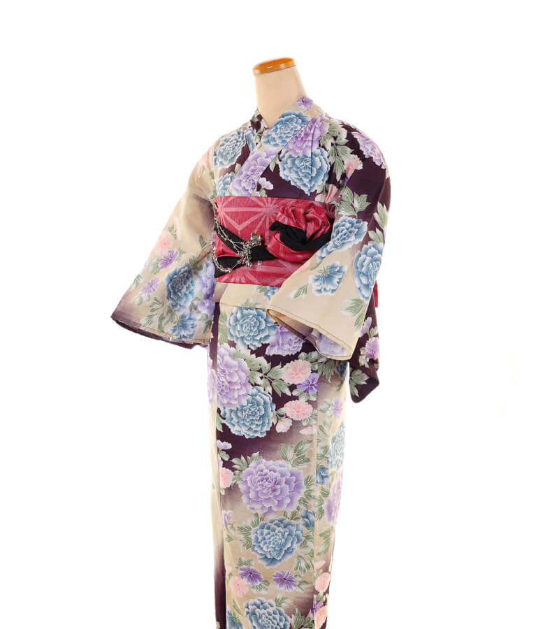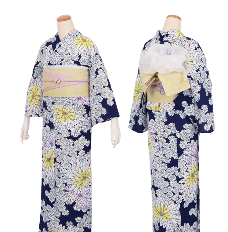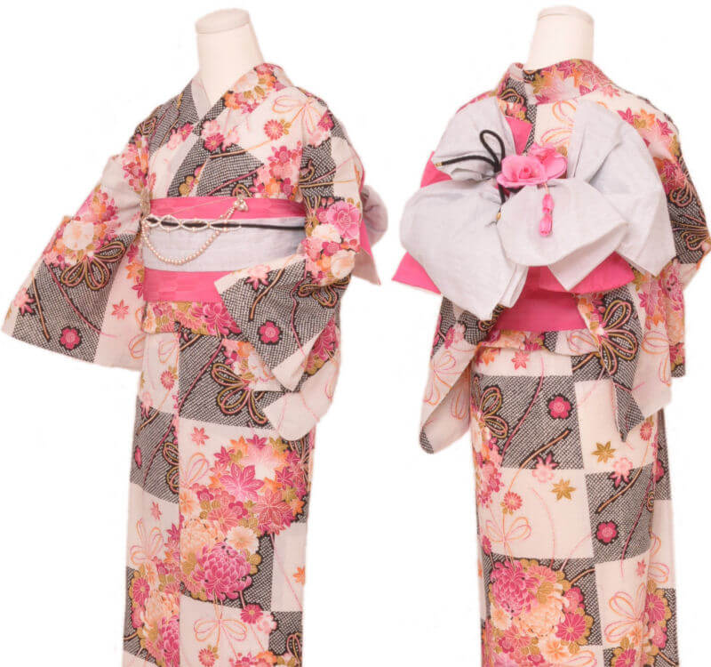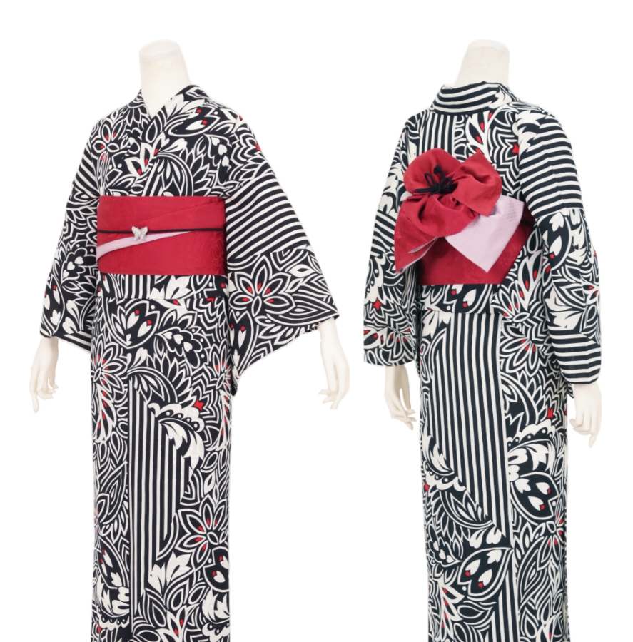 Purchase a set of five items including the yukata, obi belt, bag, sandals, and waist band. (Price differs depending on the yukata)