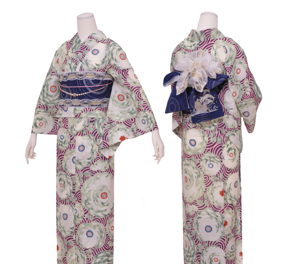 In addition to obi, heko-obi, and obi accessories, you can enjoy a detailed and stylish look with inner layers, brooches, and lace accents.