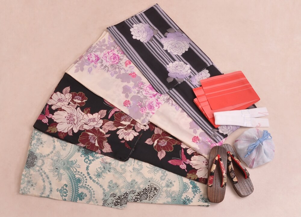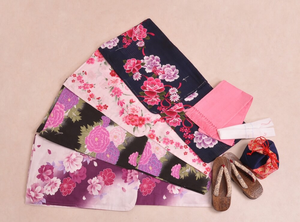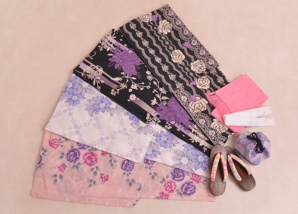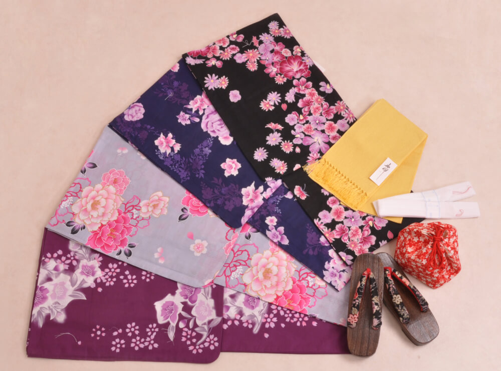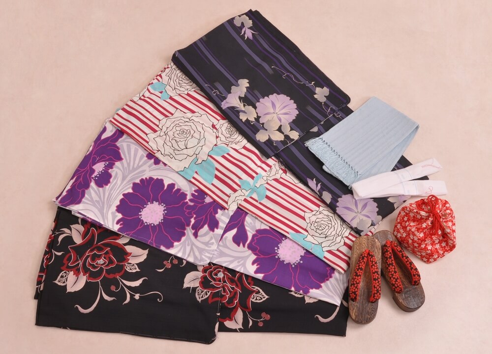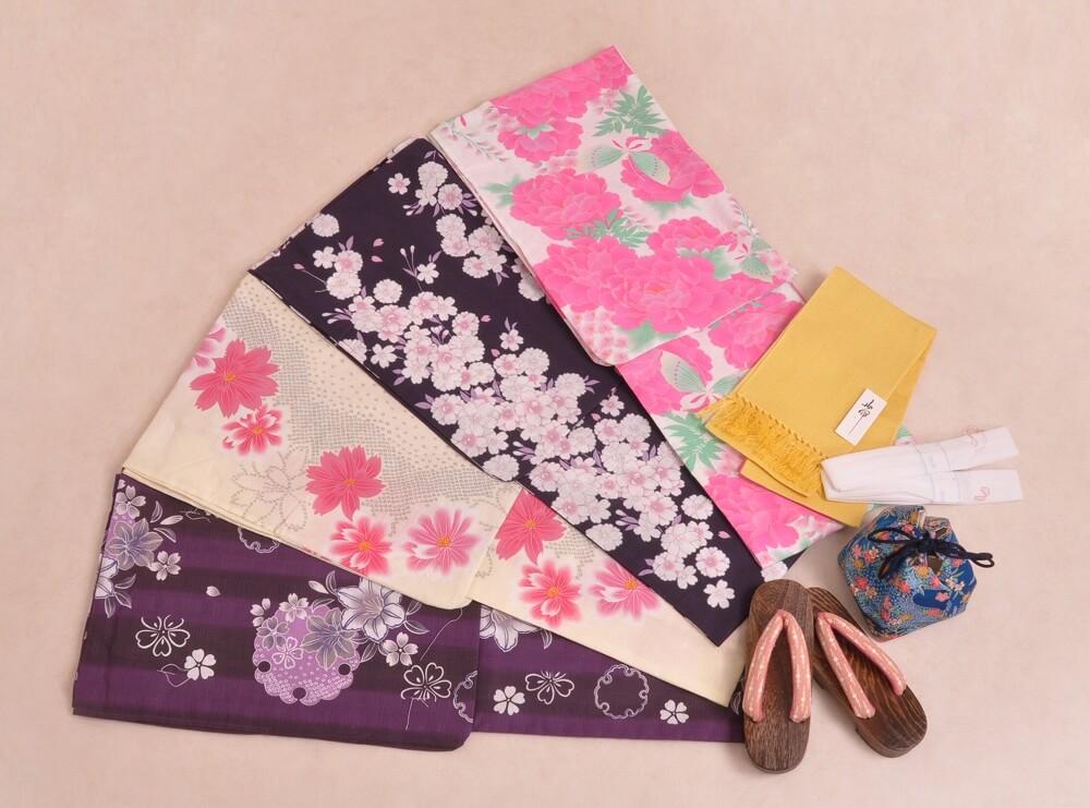 This plan lets you choose a yukata arranged in sets with matching belts, bags, and sandals.