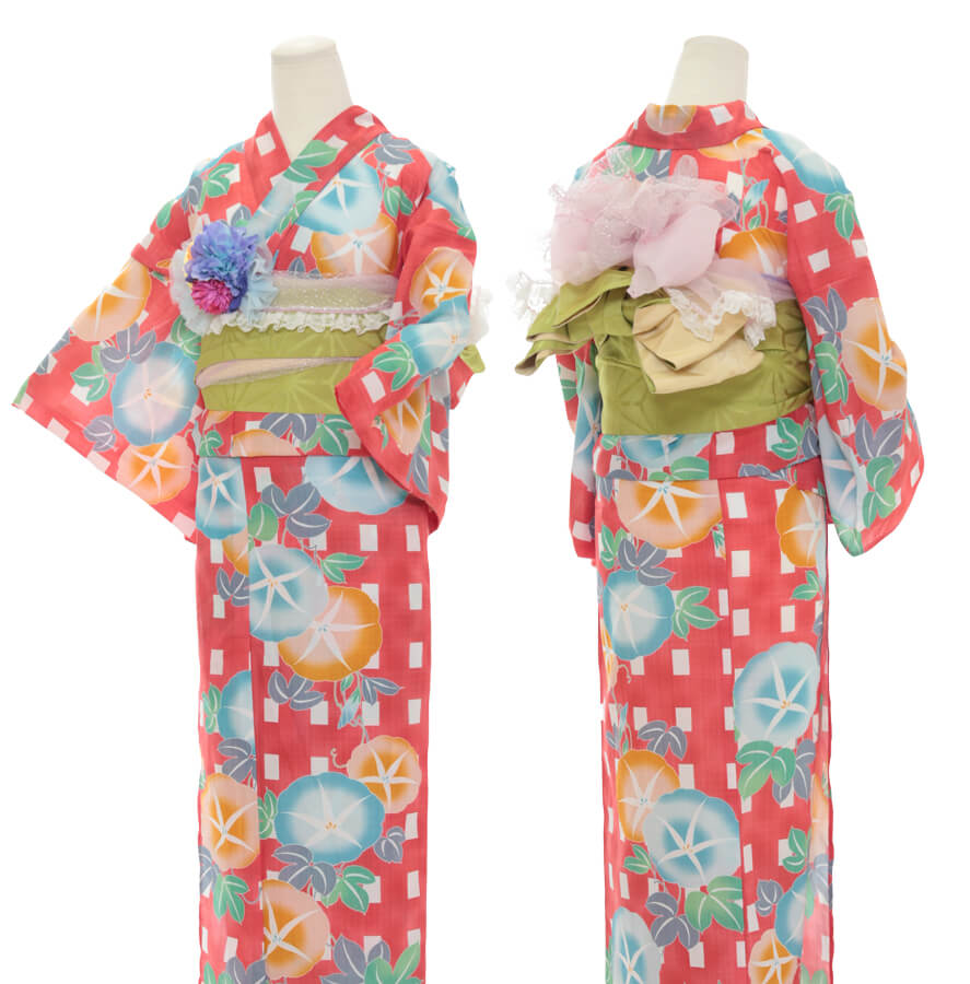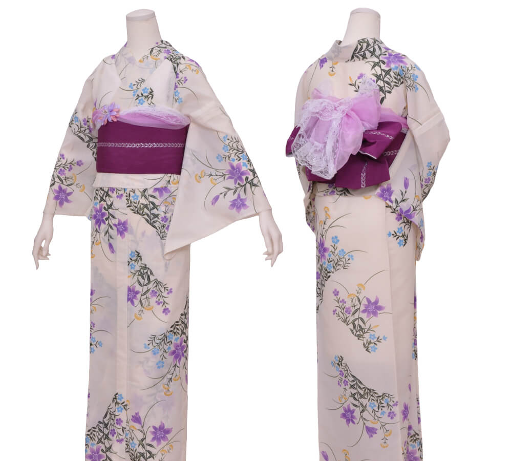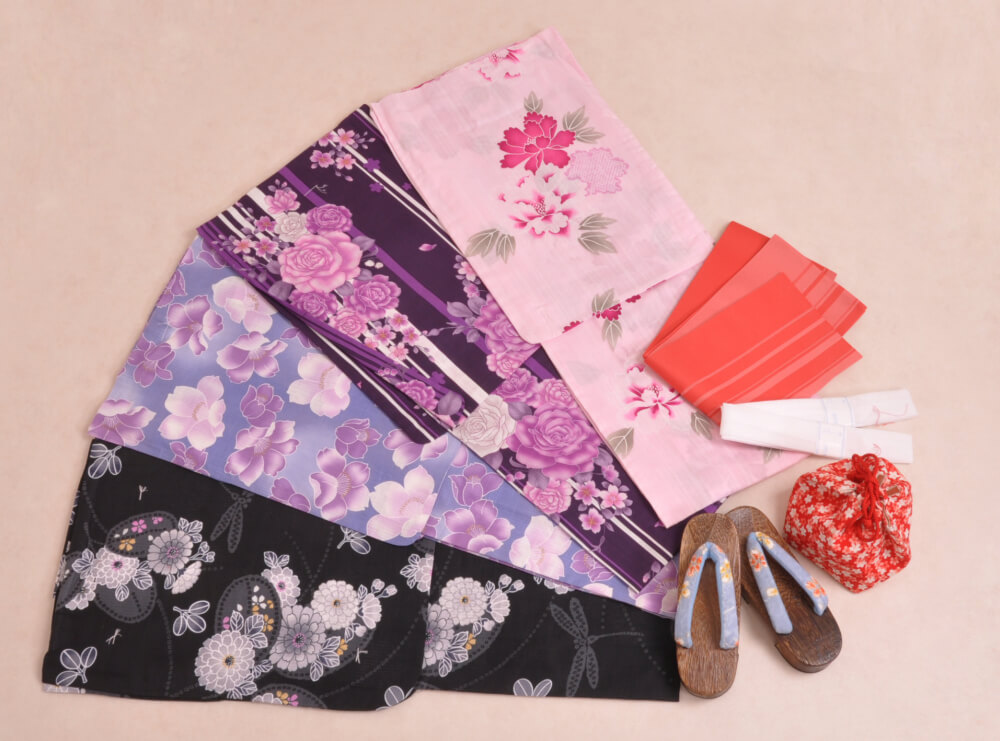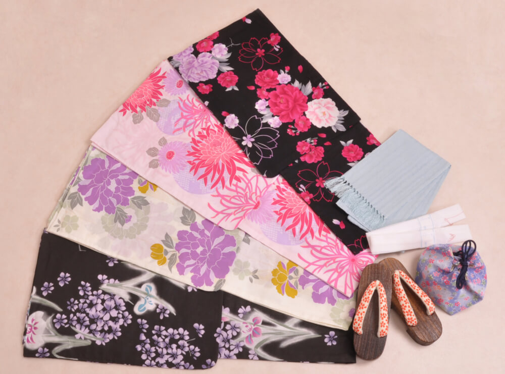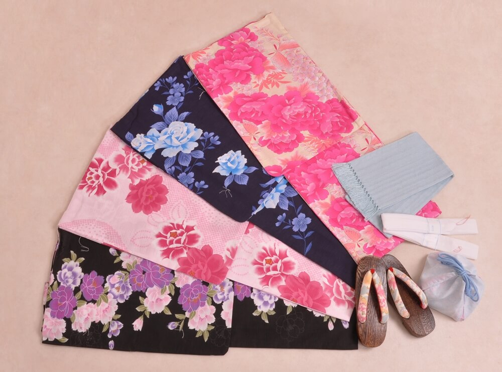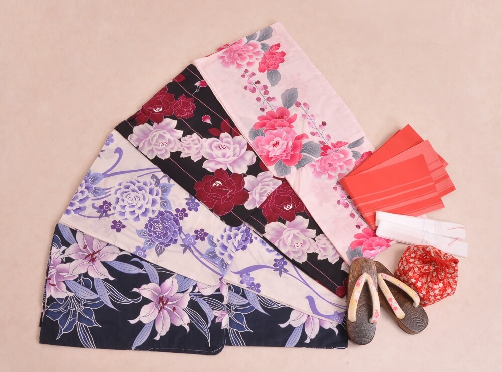This plan lets you choose a yukata arranged in sets with matching belts, bags, and sandals.