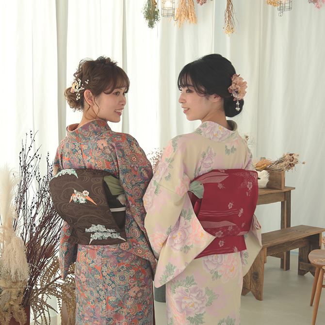 In addition to obi, heko-obi, and obi accessories, you can enjoy a detailed and stylish look with inner layers, brooches, and lace accents.