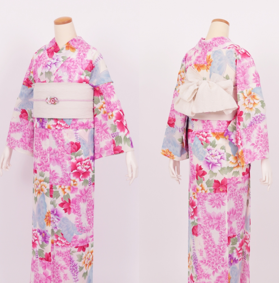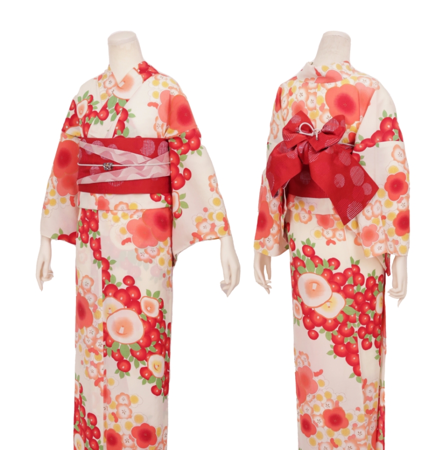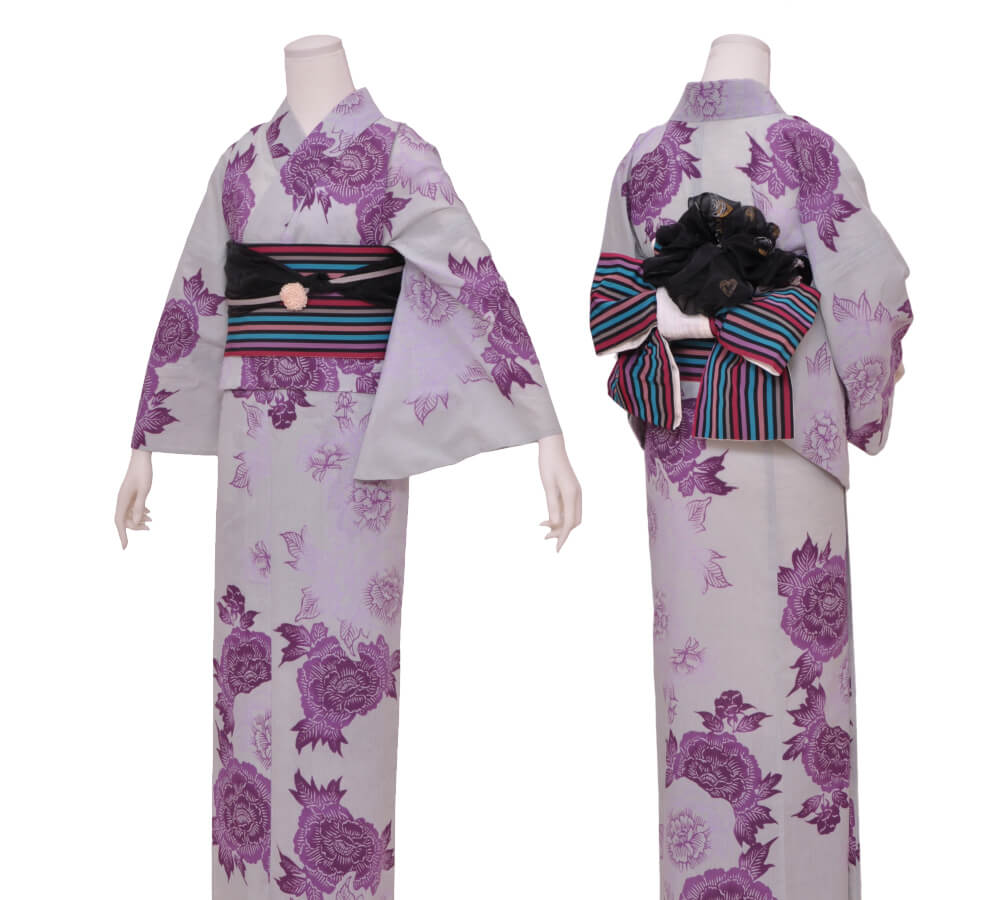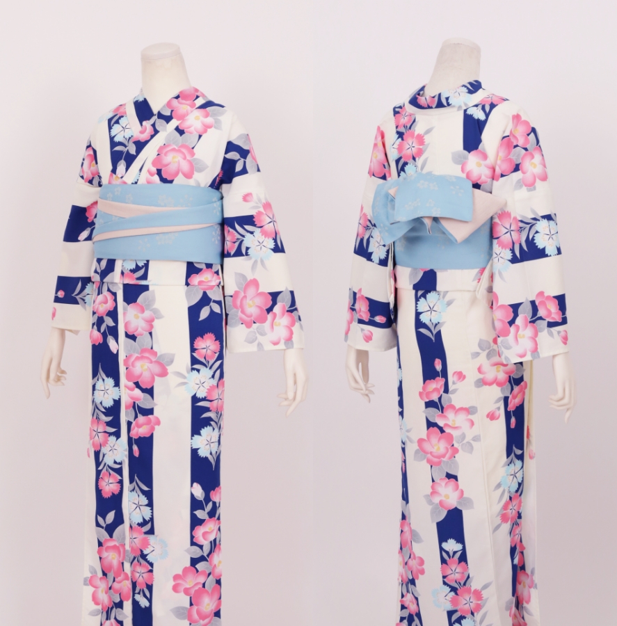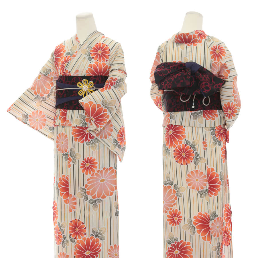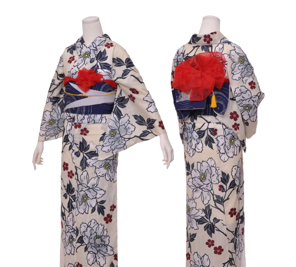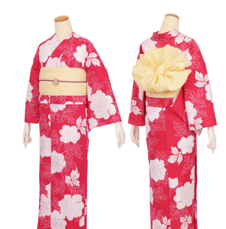 Purchase a set of five items including the yukata, obi belt, bag, sandals, and waist band. (Price differs depending on the yukata)