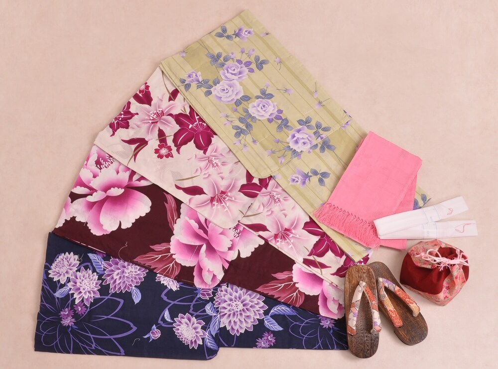 This plan lets you choose a yukata arranged in sets with matching belts, bags, and sandals.