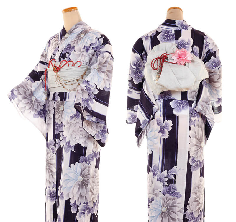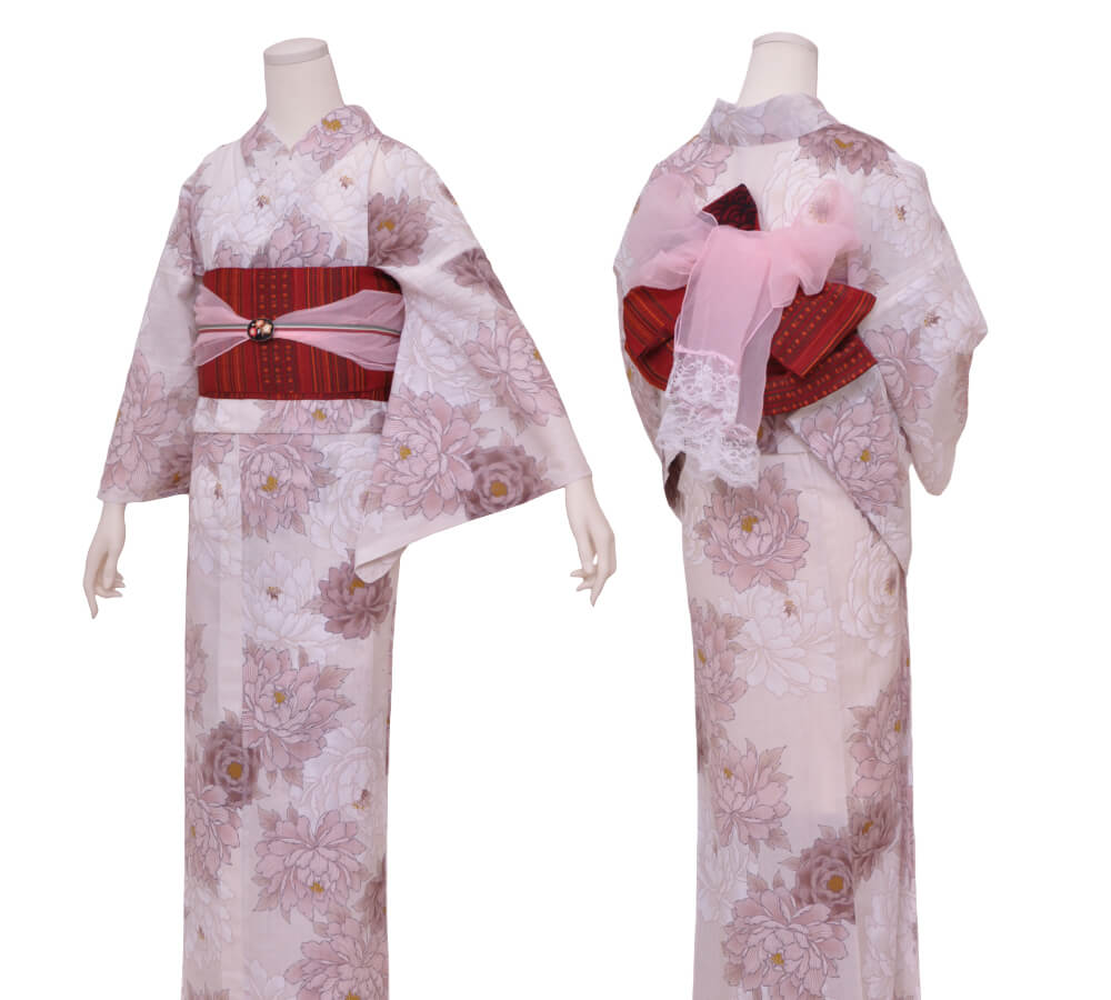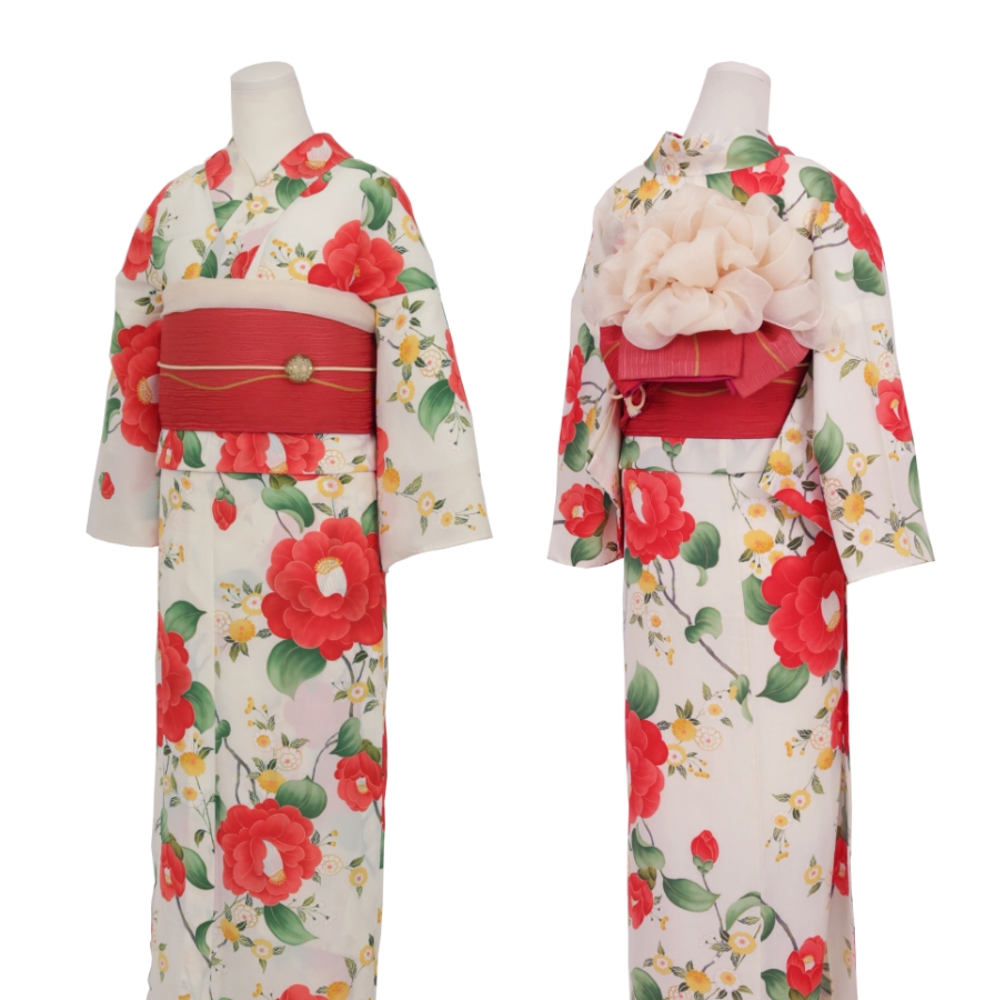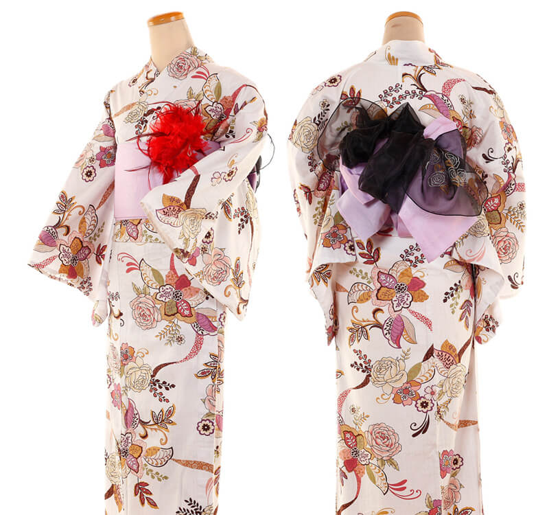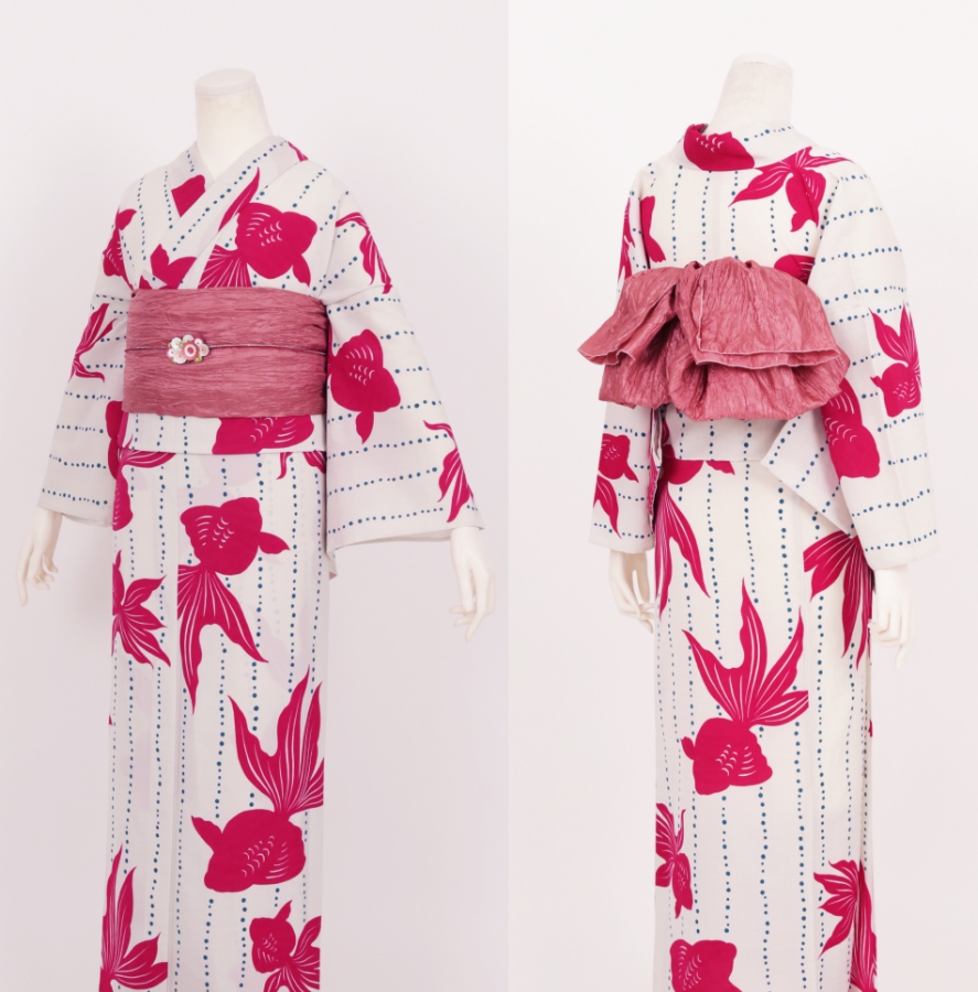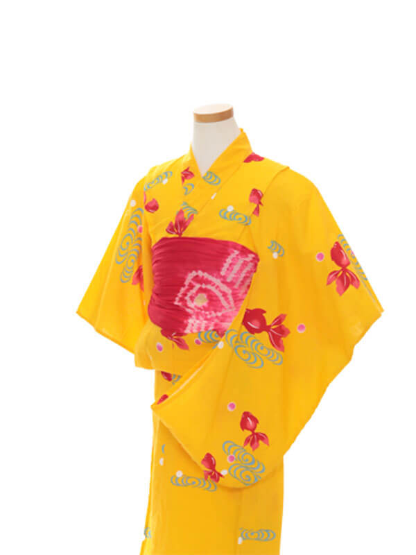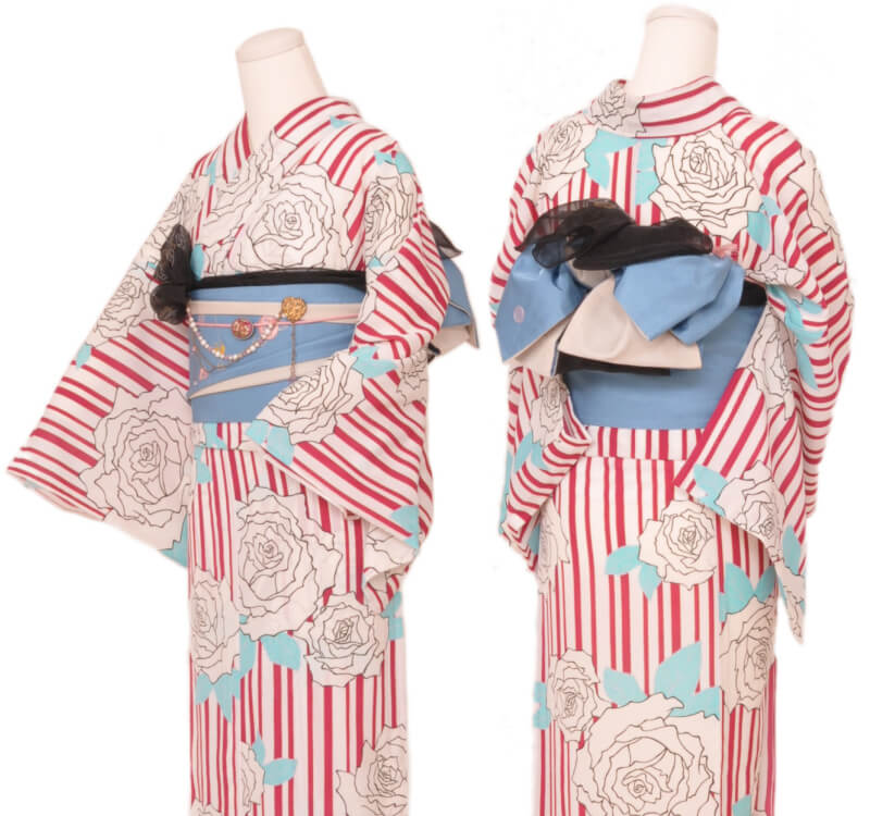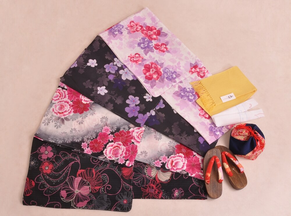 Purchase a set of five items including the yukata, obi belt, bag, sandals, and waist band. (Price differs depending on the yukata)