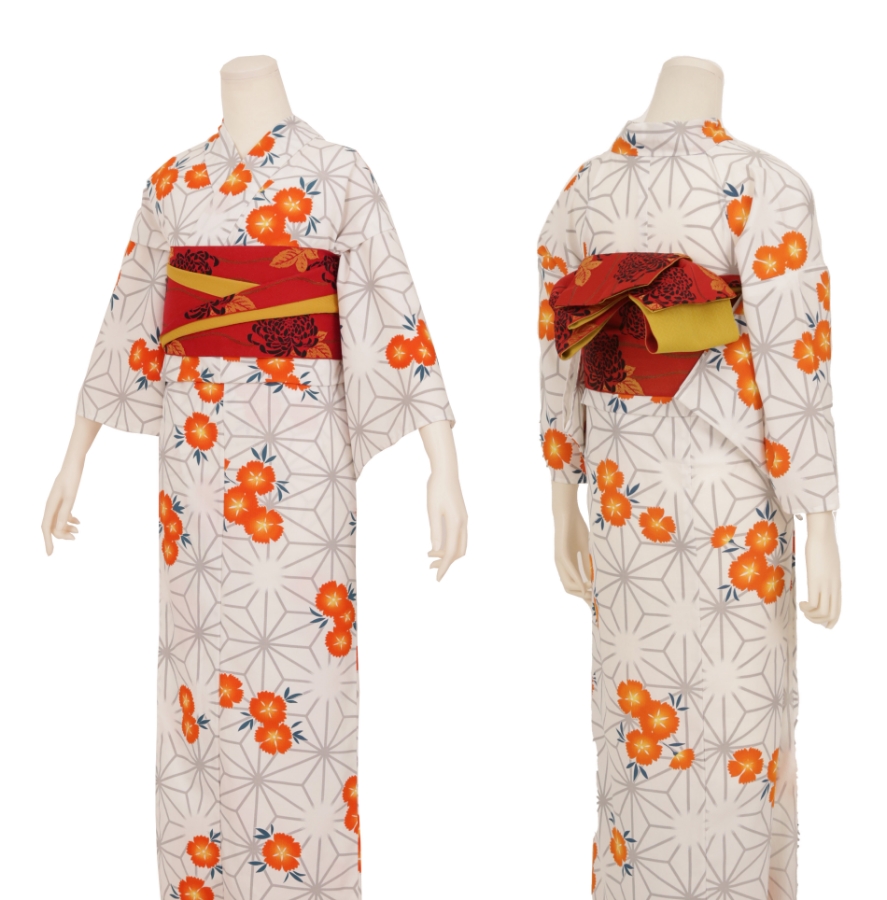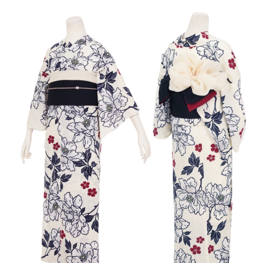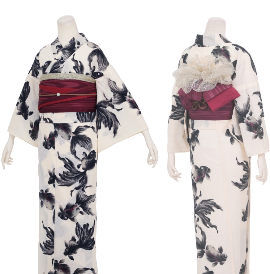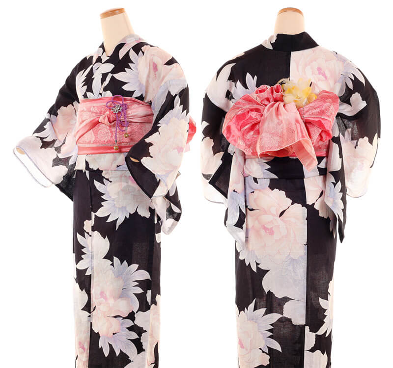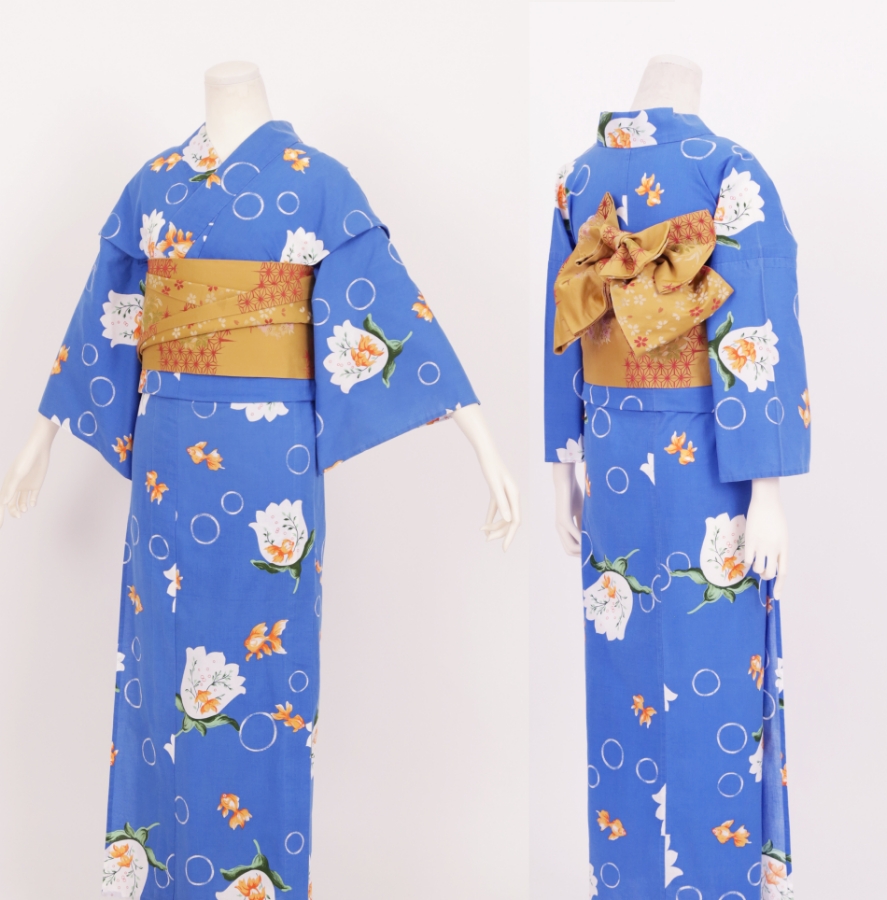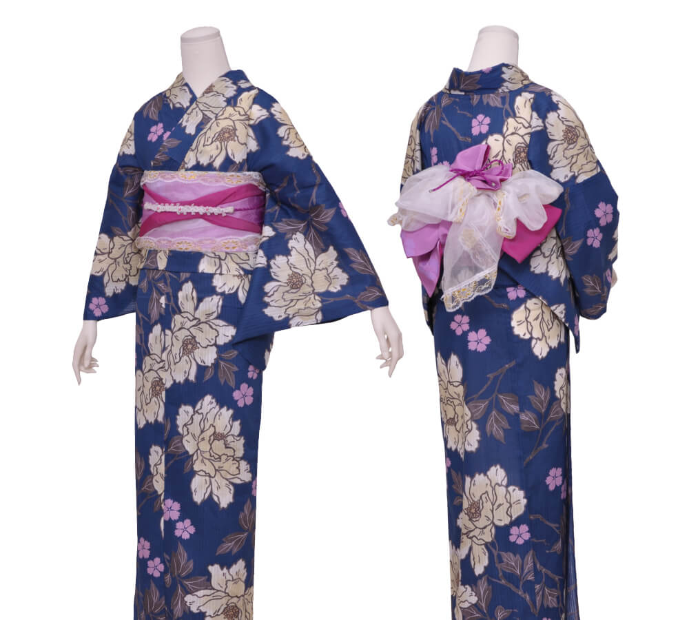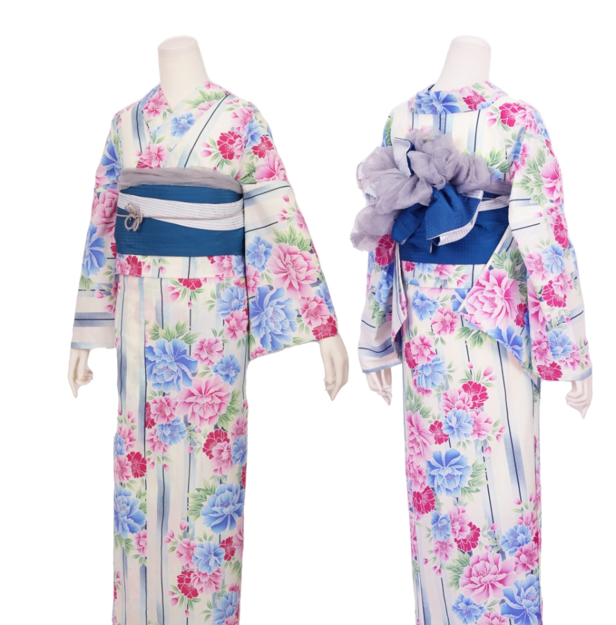 Purchase a set of five items including the yukata, obi belt, bag, sandals, and waist band. (Price differs depending on the yukata)