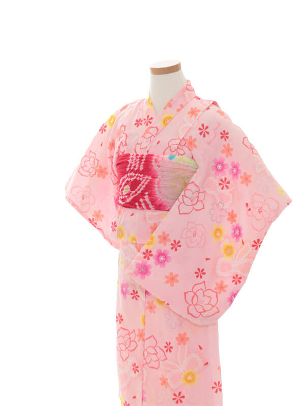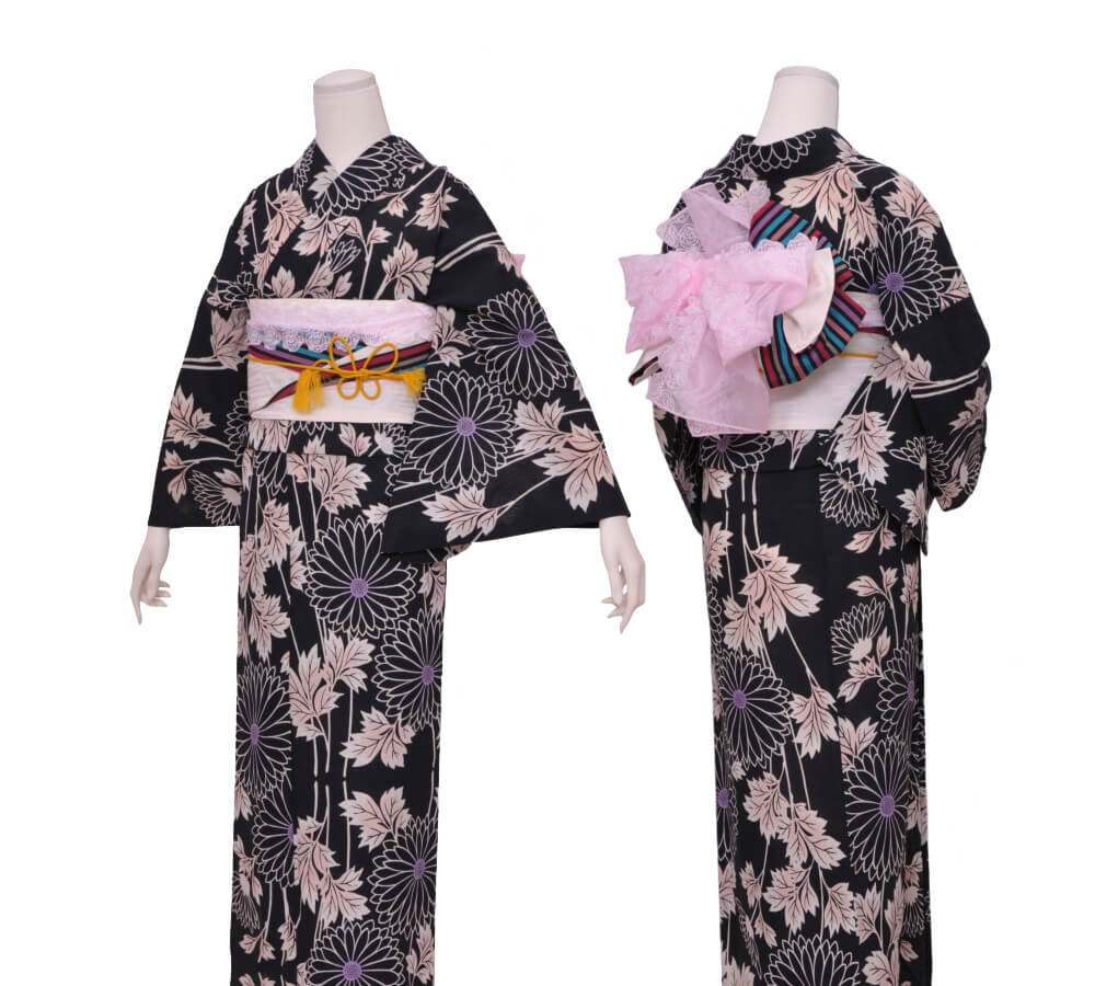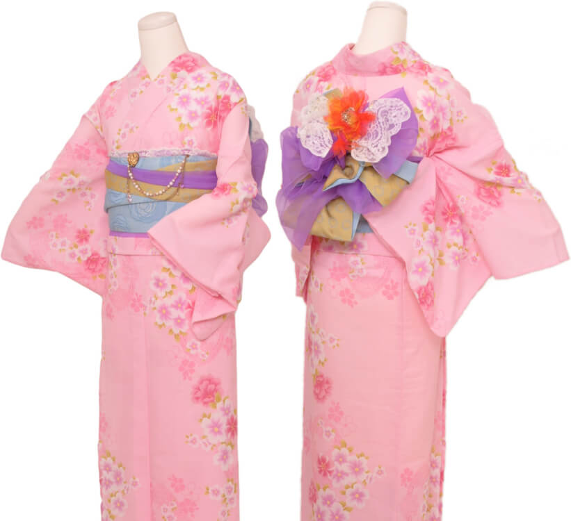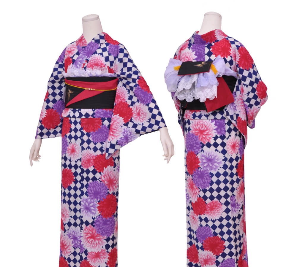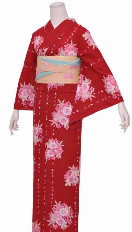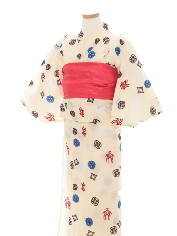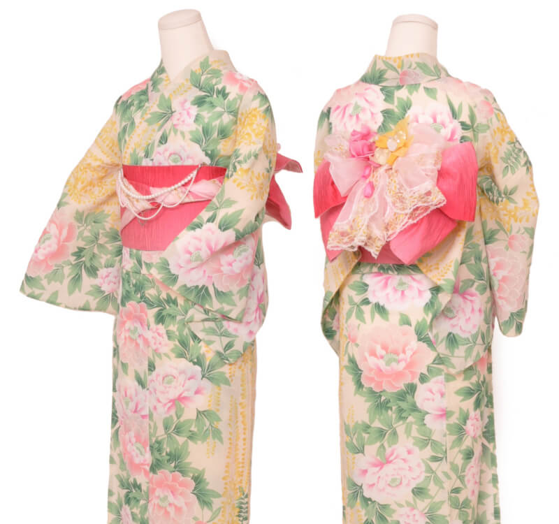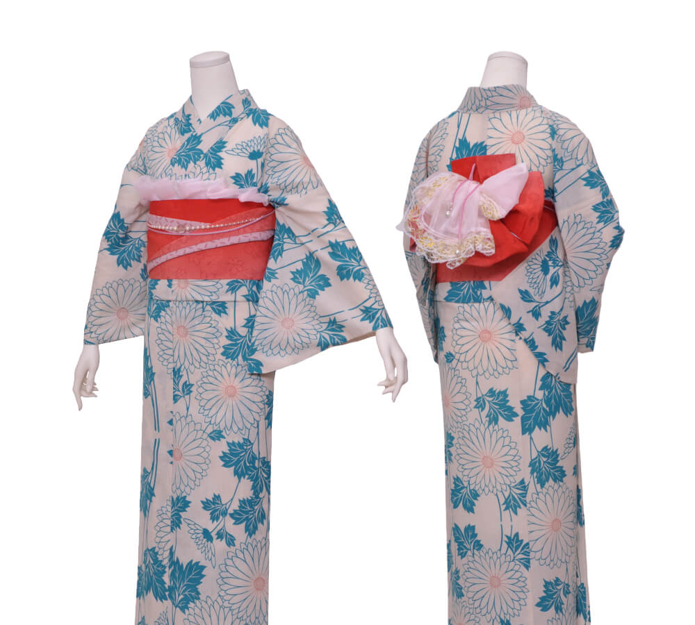 Purchase a set of five items including the yukata, obi belt, bag, sandals, and waist band. (Price differs depending on the yukata)