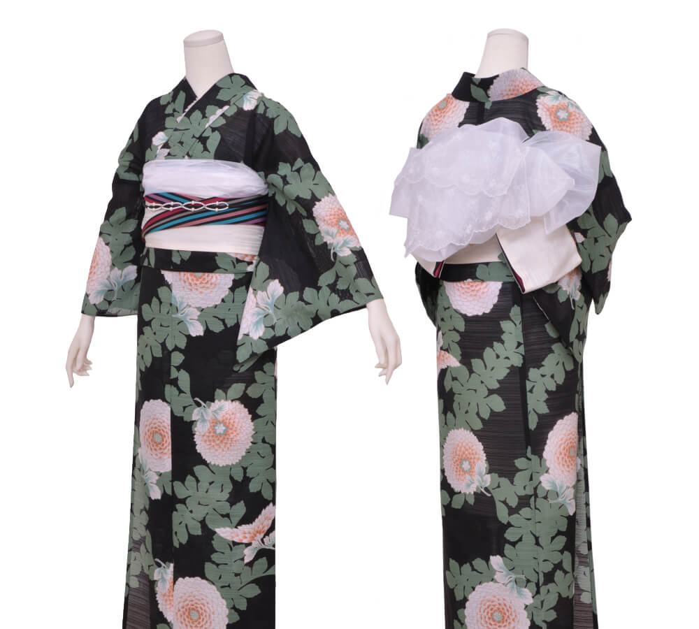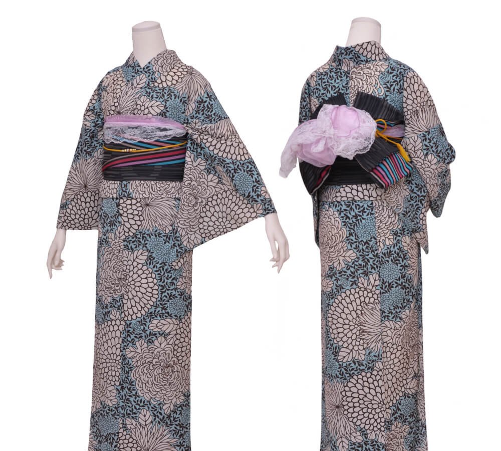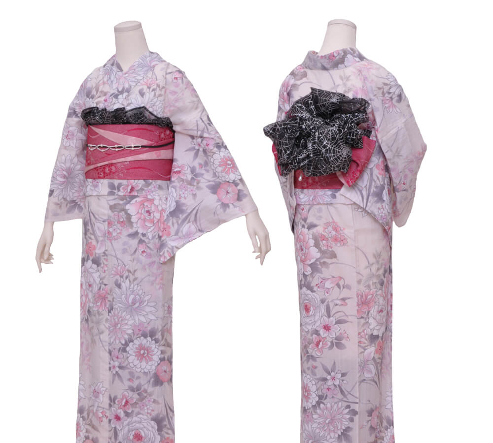 In addition to obi, heko-obi, and obi accessories, you can enjoy a detailed and stylish look with inner layers, brooches, and lace accents.