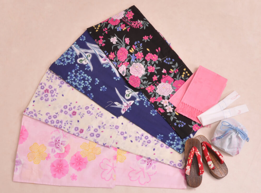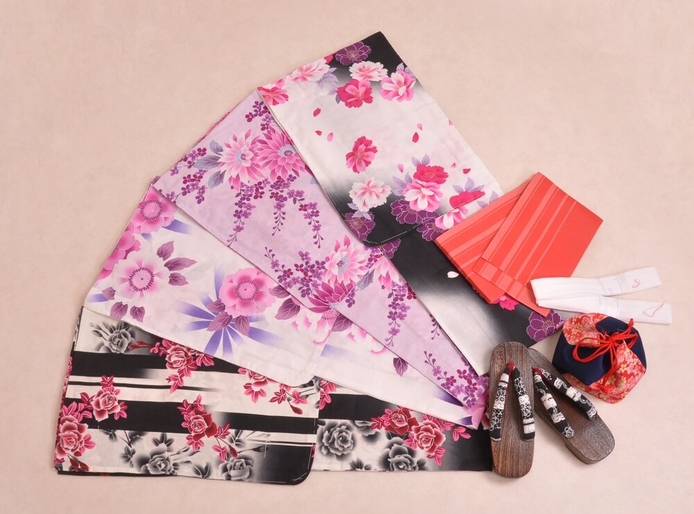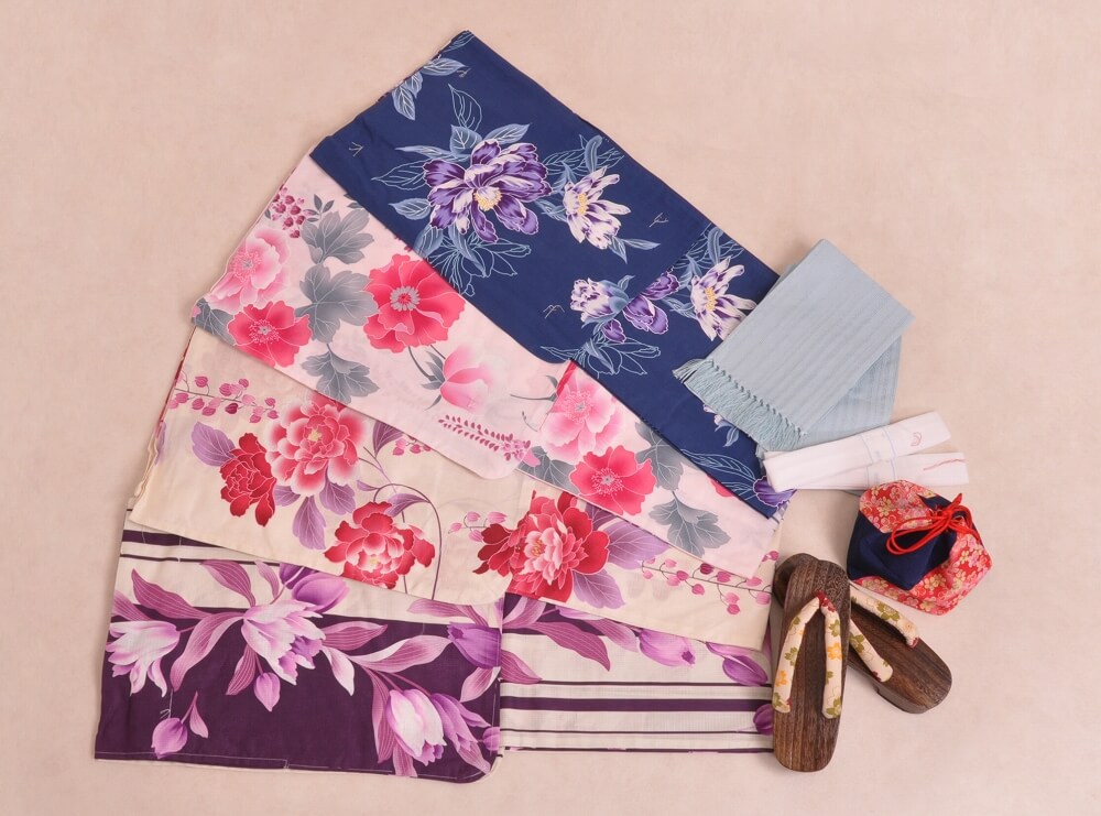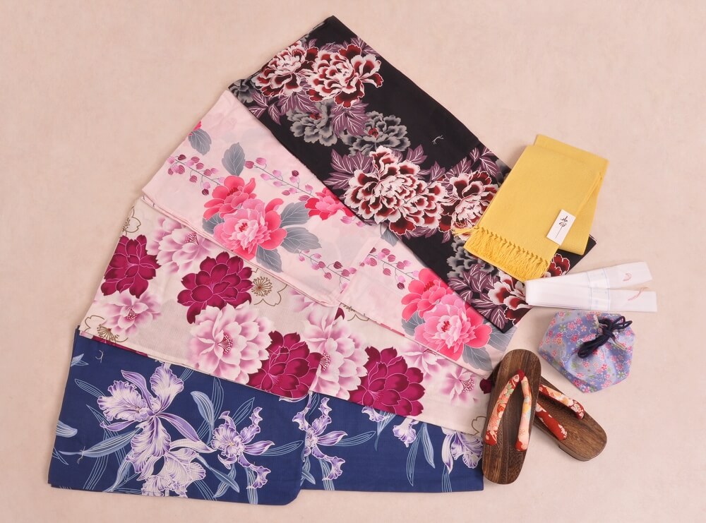 This plan lets you choose a yukata arranged in sets with matching belts, bags, and sandals.